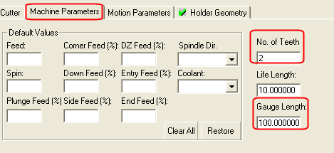 Note that Number of Teeth and Gauge Length can be found in the Machine Parameters tab.