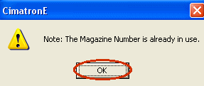 Switch back to the cutter tab and set the Magazine Number to 1. The following message is displayed: