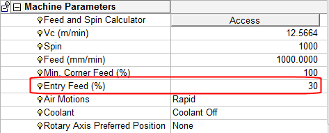 Switch to Machine Parameters. Notice the Entry FeedEntry Feed parameter.