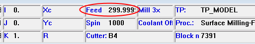 Notice the approach feed as set in the procedure.