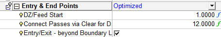The Entry Feed is the feed rate used to allow the cutter a smooth entry into the material space, measured as a percentage of the main feed rate.