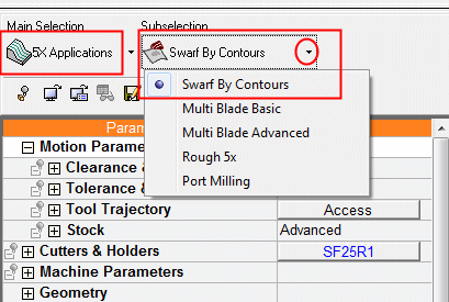 Create a new procedure: 5X Applications / Swarf By Contours.