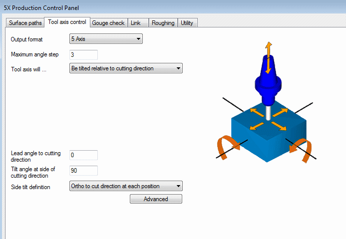 Define the following parameters in the Tool axis control tab.