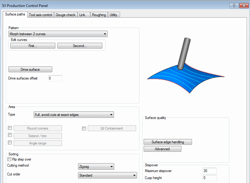 Define the following parameters in the Surface Paths dialog and execute the procedure.