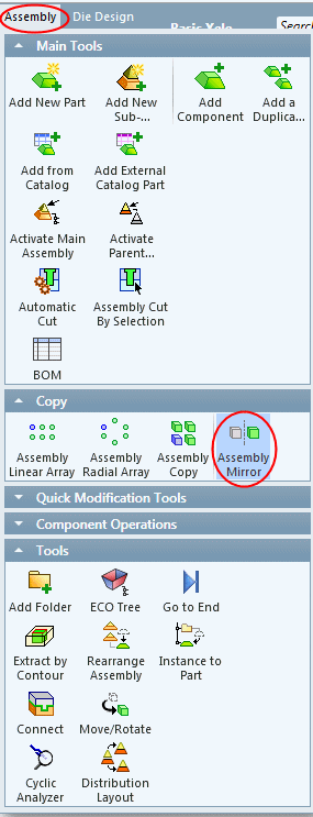 Click Assembly > Assembly MirrorAssembly > Assembly Mirror.