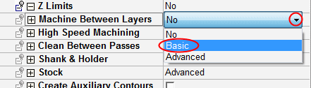 Machine Between Layers inserts intermediate layers between each two consecutive rough layers. This enables the function to extend its capability and also cover cases where you want to mill thin walls in such a way that they won't break. These parameters are also applicable for thin ribs, electrodes, or micro milling.
