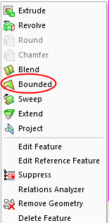 Exit the Sketcher, and right-click to select Bounded face from the dropdown menudropdown menu.
