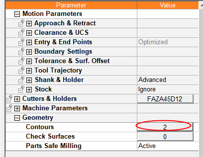 In the NC Parameters table, select tool no. 2 (FAZA45D12).