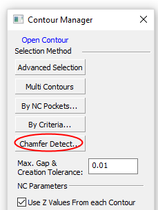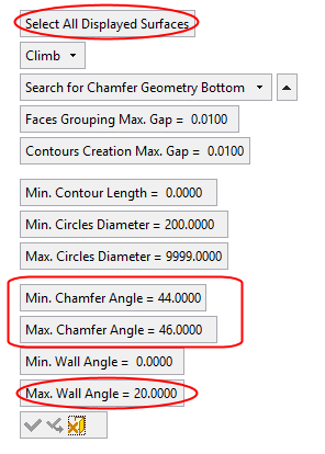 Repeat the previous step. This time search for 45° Chamfers with a tapered wall. Click the Contours button.