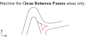 Intermediate motions, known as Clean Between Passes, may be added to machine these areas and also to reduce scallops.