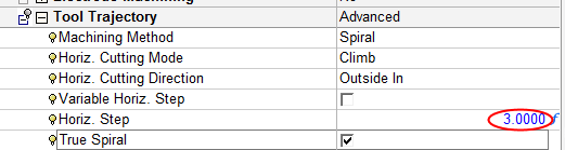 Change back the Horizontal Step to 2.0. Select the Trochoidal method and set the values as shown in the following image: