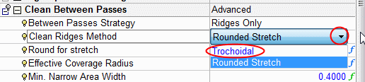 Whenever the ratio value is small, it is assumed that the work is performed under Finish conditions. In this case, there is a choice between Trochoidal or Stretched motions.
