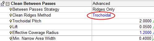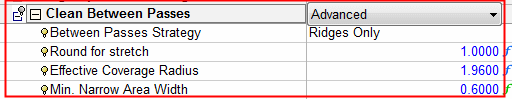Notice that the Clean Ridges MethodClean Ridges Method parameter no longer appears in the Clean Between Passes branch.