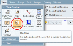 Views can be clipped using the Clip View tool. A Contour must first be defined and then selected as input for the Clip View tool, defining the boundaries of the clipping (similar to the Local Section tool).