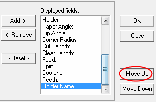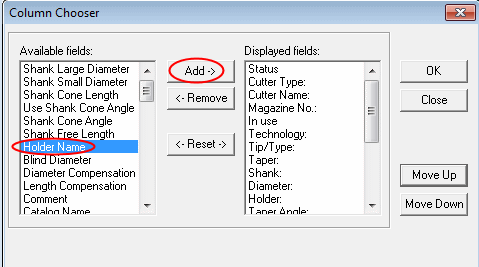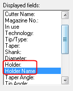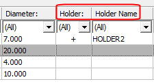 Click OK. The new column appears in the cutter table next to the Holder column.