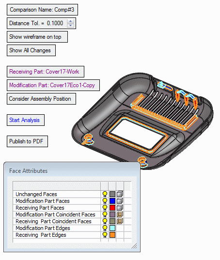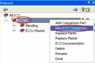 The comparison is executed between the same ECO1 part, but this time it is not against the master file but against the work file. Since the work file has Mending features, these have to be ignored.