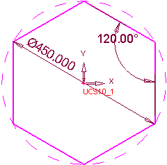 Assign a diameter of 450 mm to the circle. The hexagon is now dependent upon the diameter of the circle.