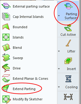 Click Parting Surfaces > Extend PartingParting Surfaces > Extend Parting.