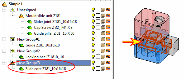 Repeat with the Slide Core Z181 so that 3 groups are created.
