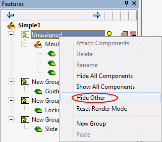 Select the Unassigned Components set, click the Right Mouse Button (RMB), and select Hide Other.