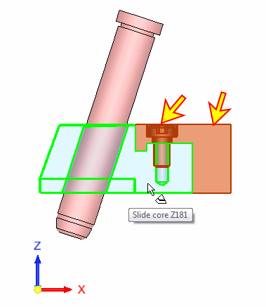 Show group 03. Select the remaining components and then highlight the Slide Core Z181 component (move the cursor over it).