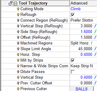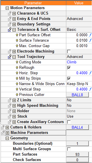 Load the Preferred Values & LookPreferred Values & Look for the Cleanup procedure and change the previous cutter to Ball8 and the current cutter to Ball4.