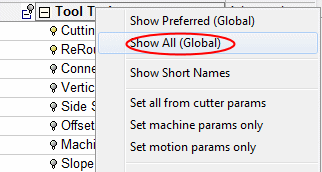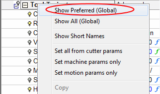 To show only the preferred parameters, right-click the leaf again, and select the option: Show Preferred (Global)Show Preferred (Global).