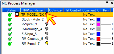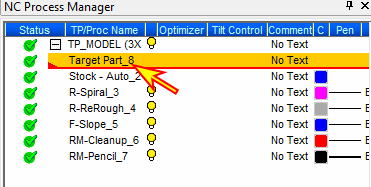 Highlight the toolpath in the NC Process Manager.