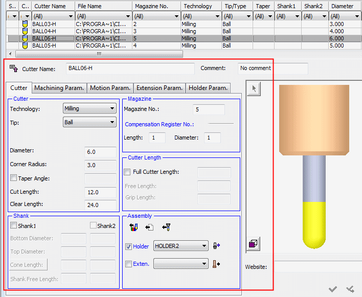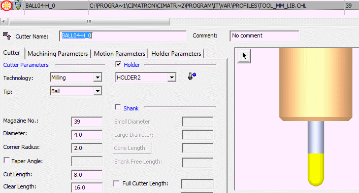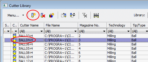 Select the Ball04-H cutter and click the New Cutter button to create a new cutter in the library.