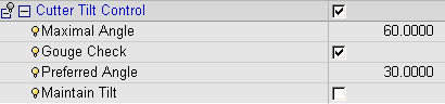 This parameter can be switched off (unmarked) in cases where increased performance is desired and where the Preferred Tilt Angle can be defined to prevent gouging. However, in these cases, there is no holder gouge checking by the system and you should use the Machine Simulator to confirm the results.
