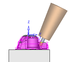 Tilting enables you to use the full capabilities of your 5 axis machine to mill additional material with the current tool. Instead of immediately replacing the cutter when a gouge is imminent, the work table or tool is tilted to a specified Tilt Angle, enabling you to continue removing material with the current tool.