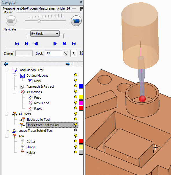It is important to understand that the navigated motions are generic. The same motions will be also seen when you simulate a Measurement procedure, because in most cases the output from such a procedure to the machine is not a set of motions but a special cycle or a macro call.