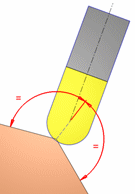 This can be achieved since, regardless of the tool orientation, the touch point of the tool is always in a way that the center of the tool is on a bi-vector direction to the edge (see the image on the right).
