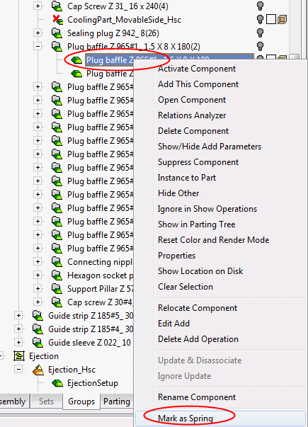 Any component may be defined as a spring. Right-click a component and select Mark as Spring.