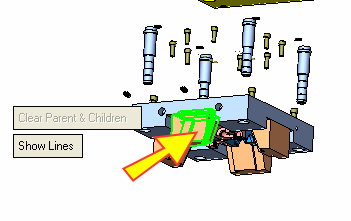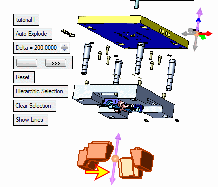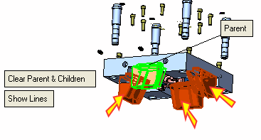 Now that you have edited and defined your hierarchical connections, you must move the selected group in the required direction. To do so, you must return to the first required step in the Feature Guidefirst required step in the Feature Guide. Select the parent locking heel and move all of them down.