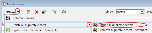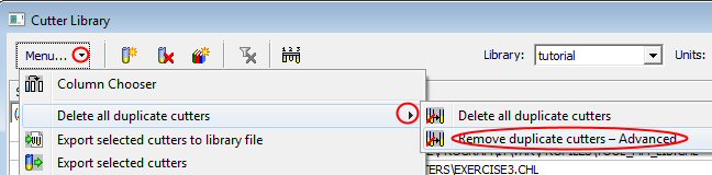 From the Delete All Duplicate Cutters dropdown menu, select the option Remove Duplicate Cutters - Advanced.