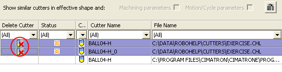 Select the cutters you wish to delete. Use the Ctrl key to select more than one cutter. Use the Select All or Clear SelectionSelect All or Clear Selection buttons if needed.