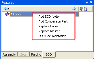 Right-click the main folder to view the available ECO operations under the All ECO folder.