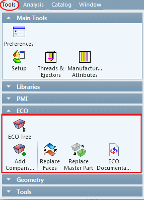 These options can also be accessed via the Tools > ECOTools > ECO tools menu.