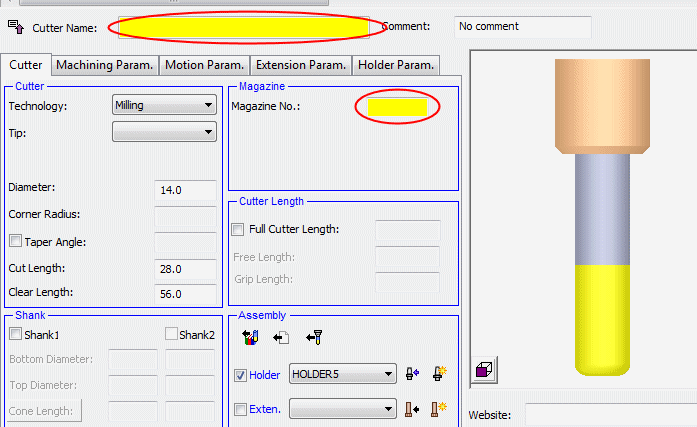 When multiple cutters are selected, common parameter fields that have different values are highlighted in YELLOW.