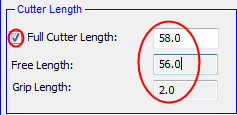 Mark the Full Cutter Length checkbox and change the Full Cutter Length to 58.