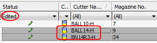 Both procedures are shown with the Edit icon. Use the Edited filter to display only the edited cutters.