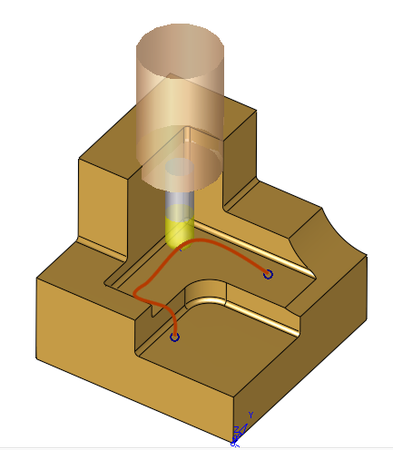 Once the cutter appears, it is obvious why this segment was found as Gouging: the holder collides.