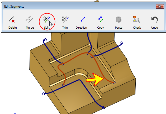 Pick the segment again to set the required splitting point (if it is different from the default one).