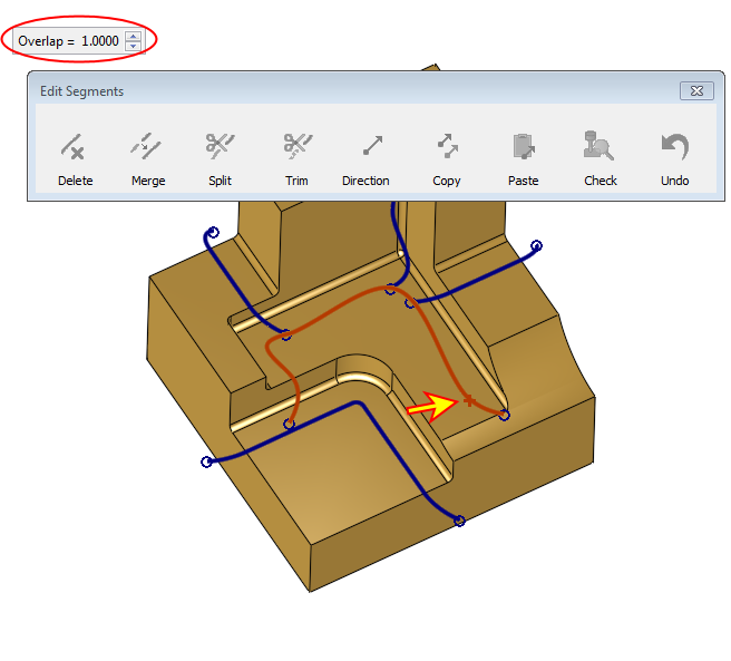The overlap will ensure that the two split segments will later be machined almost as smooth, as the original segment was machined without being split.