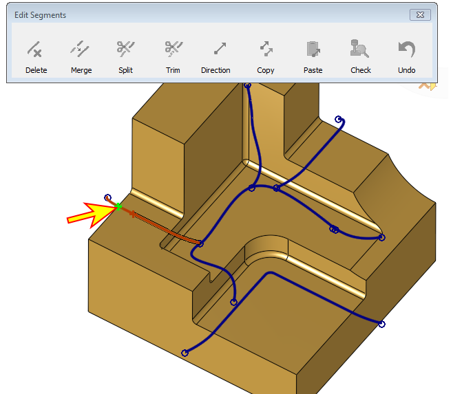 Select the segments indicated by the arrow in the following image, and click Trim.