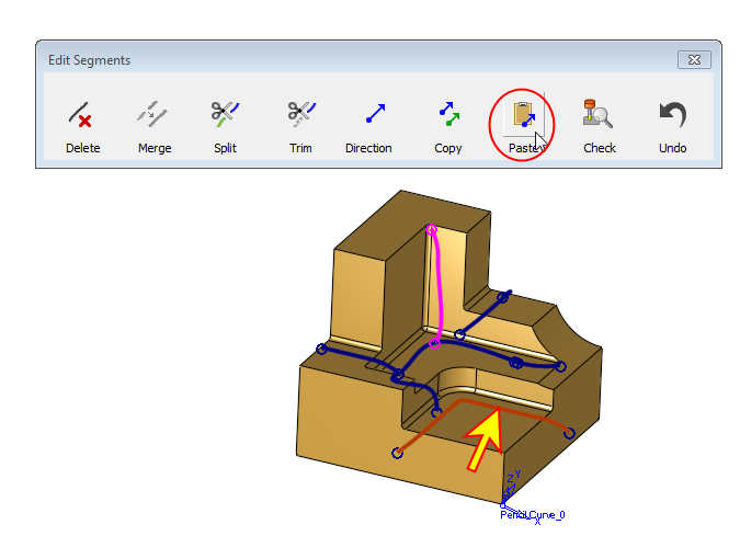 By doing this, the direction (which was previously set for the vertical segment) is now assigned to the lowest segments as well, making sure that both segments have the same direction.