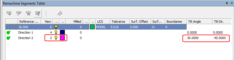 As a result, two of the segments have a new direction. On the right hand of the direction row, the Tilt Angle and Tilt Dir. are specified.
