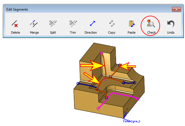 Select the three segments that are marked by arrows. Click Check (segment direction).