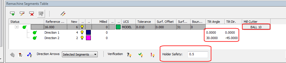 The check is performed considering the Mill Cutter, the set Holder Safety margin, and the set direction.